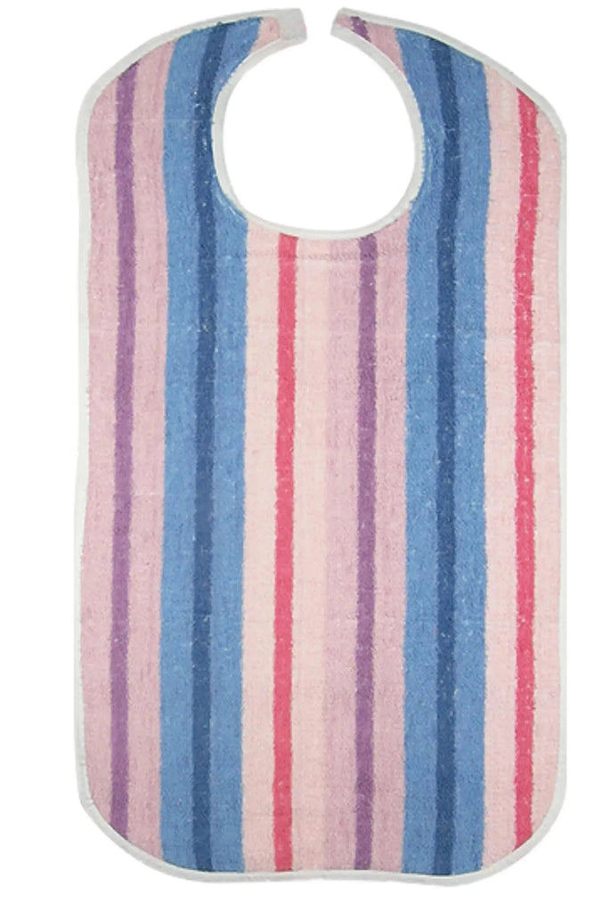 Our Adult Terry Bibs come in a convenient pack of 12 and are perfect for those who need extra protection against spills and stains. Available in a variety of colors, patterns, and fabrics, these bibs not only provide functionality but also style. Made from a blend of cotton and poly, our bibs are designed to withstand frequent washing and are durable enough for commercial use. Whether you're caring for a loved one or running a business, our Adult Terry Bibs are a reliable and practical choice. If you have any questions, please don't hesitate to contact us. We're here to help.
