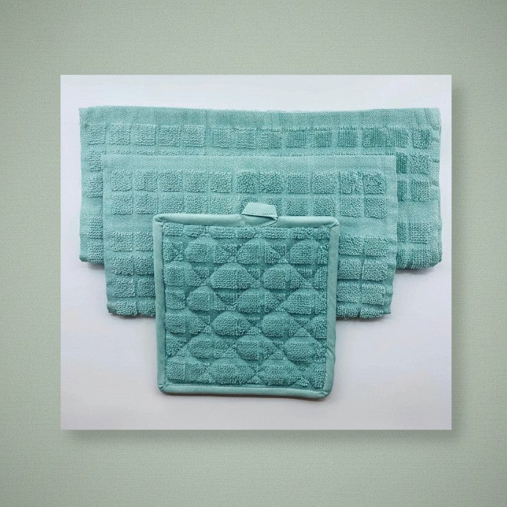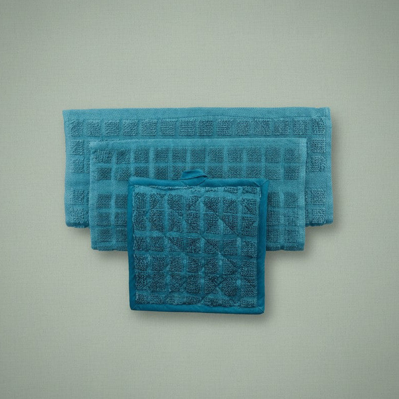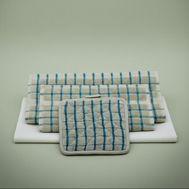 Introducing our Kitchen Ensemble Collection, the perfect addition to any stylish kitchen. Made with 100% cotton two-ply and featuring a solid yarn-dyed checkered design, these pieces are not only functional but also visually appealing. This collection includes kitchen towels, dishcloths, and potholders, making it a complete set for all your kitchen needs.