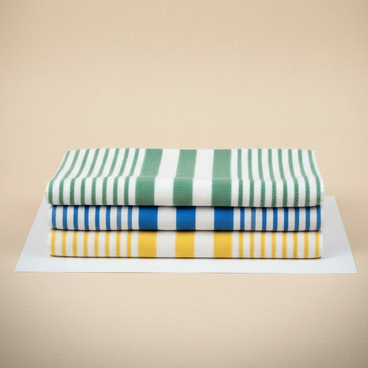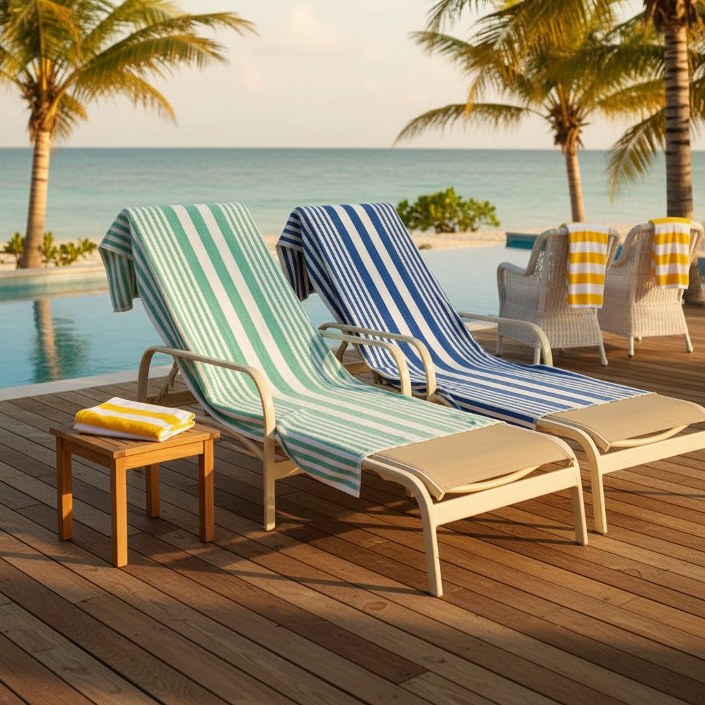 The GOT Collection Tropical Stripe Pool Towels by Rifz are a vibrant and functional choice for anyone seeking high-quality, affordable beach towels and pool towels in bulk. These tropical stripes pool towels feature bold, refreshing designs like mint stripe towels, yellow stripe towels, green stripe towels, and blue striped towels, offering a playful, resort-style look that enhances any leisure or hospitality setting.